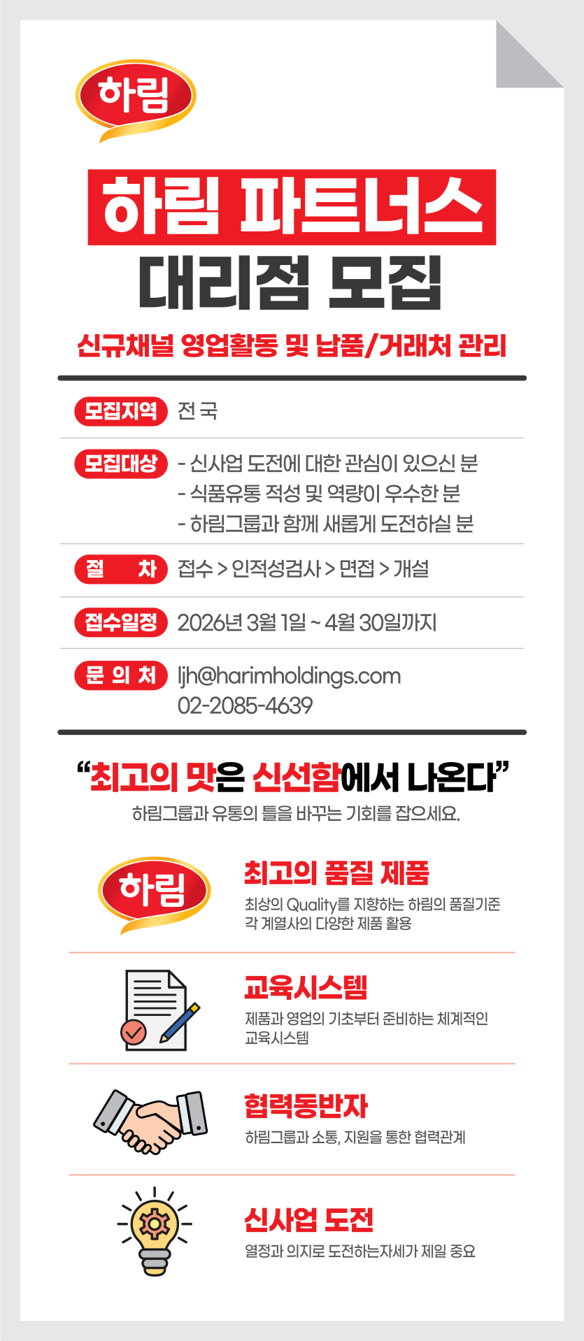 하림 파트너스 대리점 모집 공고안